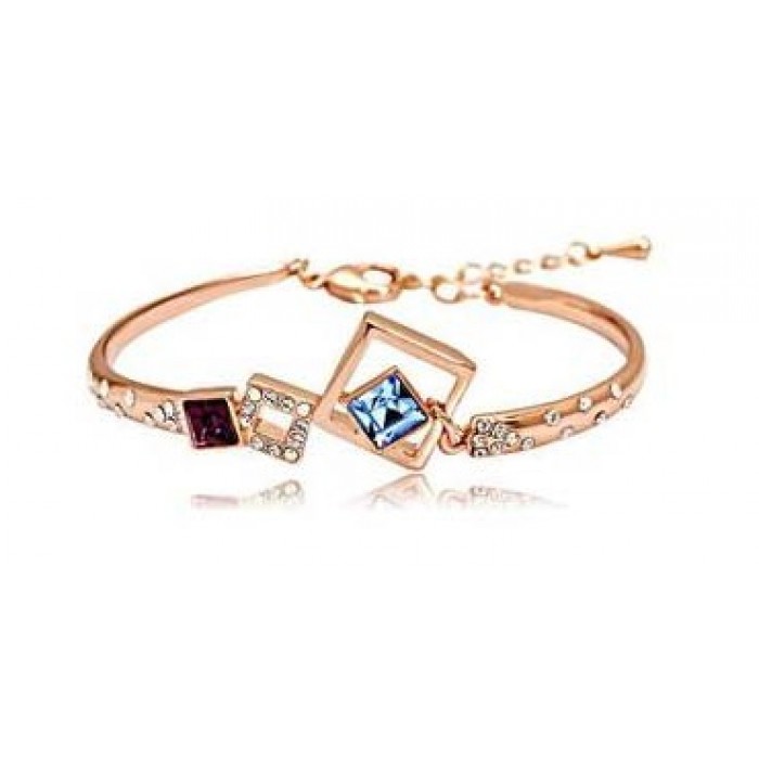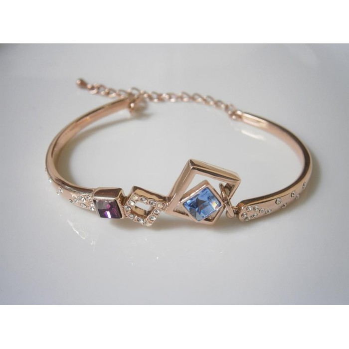 Bratara este realizata din aliaj de zinc, placata cu aur 18K si decorata cu cristale Swarovski.Lungime 18,5 + 5 cm.