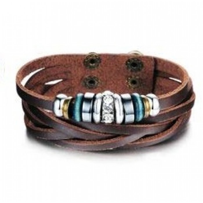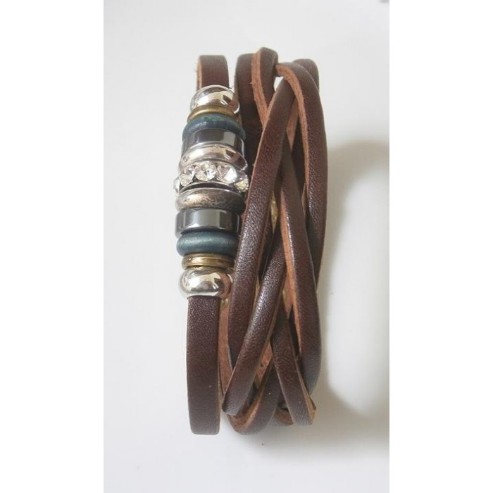 Bratara este realizata din piele naturala de vita cu otel titanium. Lungime :22,5 cm.latime :2,4 cm.Este prevazuta cu sistem inchidere cu capse metalice.